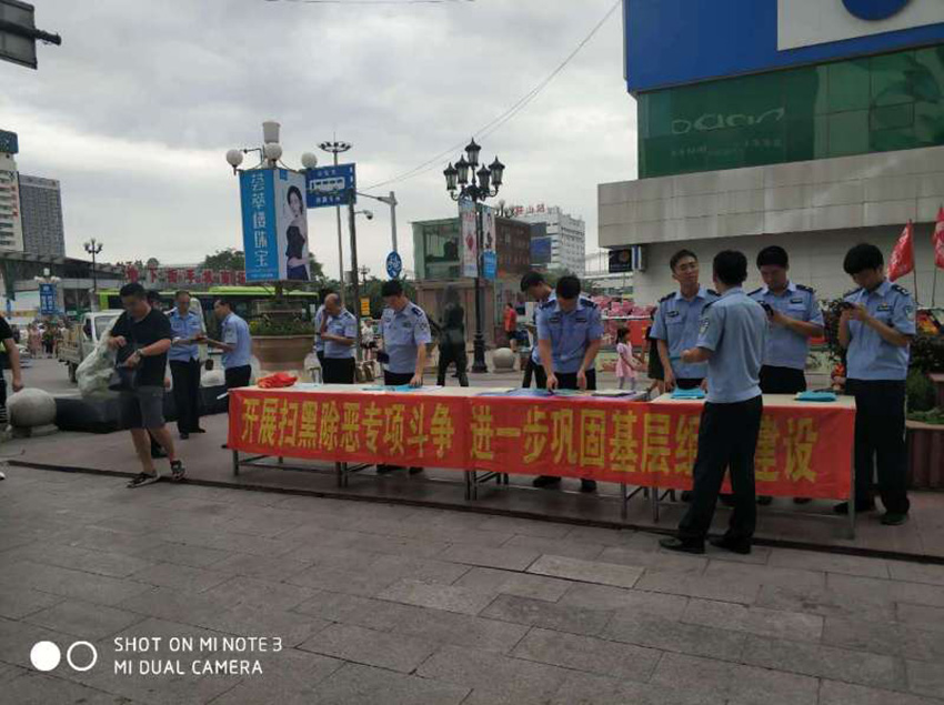 8月12日,灜海金街和站前派出所聯(lián)合組織掃黑除惡專項宣傳活動,現(xiàn)場解答和發(fā)放宣傳資料