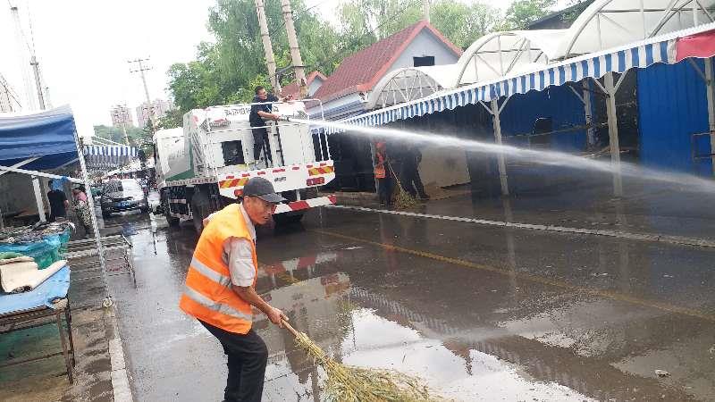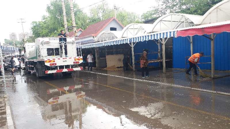 一周兩回,風雨無阻清洗大館市場,為迎國檢和美化市場做不懈努力